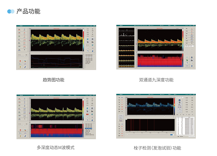 支持單通栓子與雙通栓子檢測模式,在血管選擇區(qū)還可選擇進行屏氣試驗與腦死亡試驗